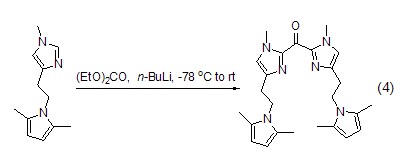 ketones, tertiary alcohols synthesis by directly reacting metal organic matter with diethyl carbonate, ketones [6,7] or tertiary alcohols [8,9] can be obtained, as shown by the reaction of imidazole to synthesize the corresponding ketone (formula 4).