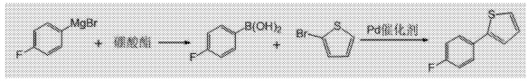 canagliflozin is a drug for the treatment of diabetes with outstanding clinical performance in the treatment of type 2 diabetes. among them, 2-(4-fluorophenyl)thiophene is an important intermediate in the synthesis of canagliflozin. 2-(4-fluorophenyl)thiophene, molecular formula c10h7fs, molecular weight 178.23, is an off-white powdery solid at room temperature. in the existing preparation method of 2-(4-fluorophenyl)thiophene, it is difficult to obtain reaction raw materials , harsh reaction conditions, high energy consumption, high cost, low yield, difficult purification and other shortcomings. in order to overcome the shortcomings and deficiencies of the above-mentioned processes, a new method for synthesizing 2-(4-fluorophenyl)thiophene is needed.