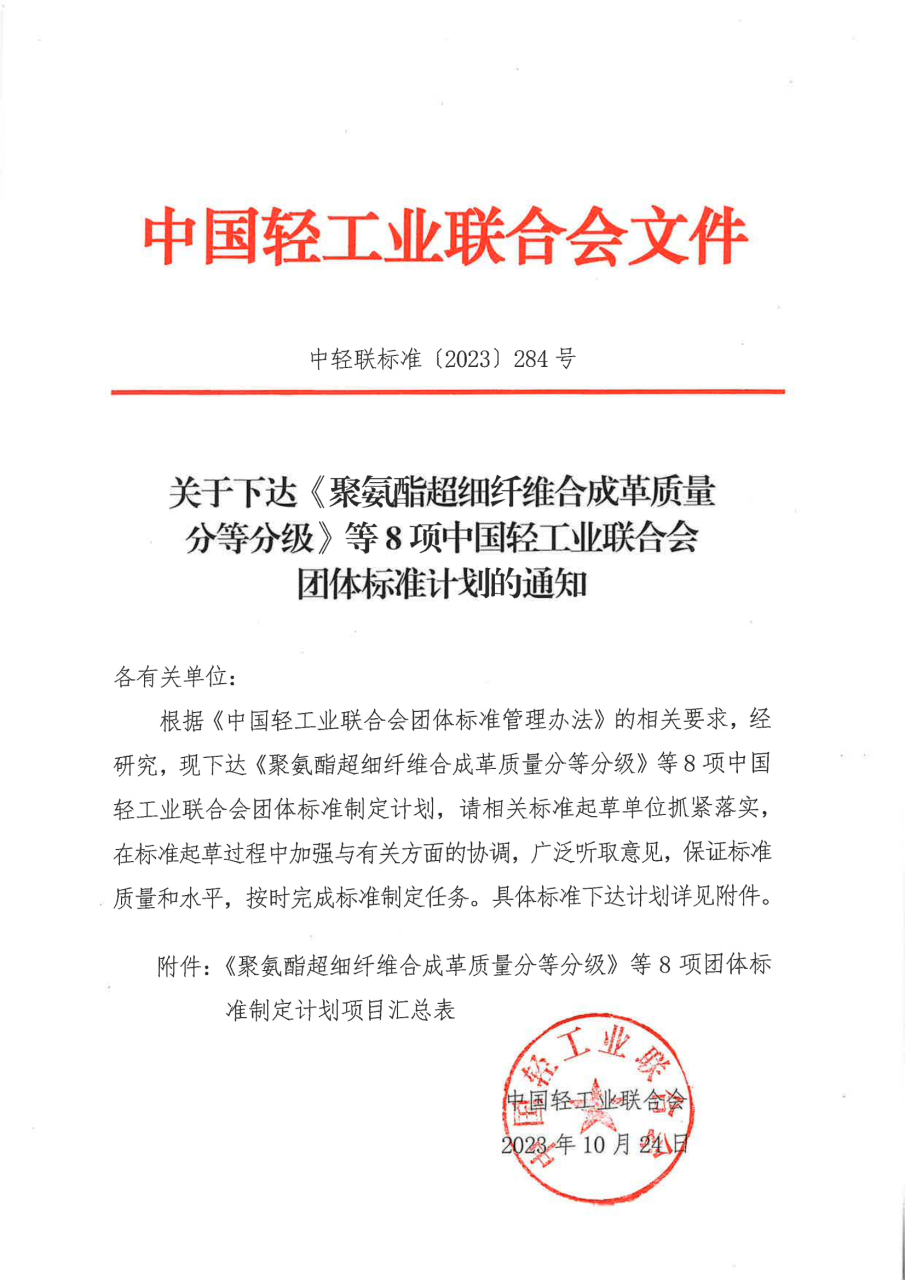 the eight group standard development plan projects include “quality grading and grading of polyurethane microfiber synthetic leather”, ”